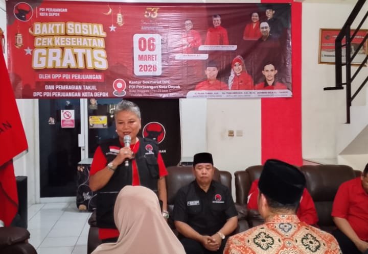 DEPOK HARIAN7.COM  — Ratusan warga mengikuti kegiatan pemeriksaan kesehatan gratis yang digelar di Kantor Sekretariat DPC PDI Perjuangan Kota Depok, Jumat (6/3/2026). Kegiatan bakti sosial tersebut dihadiri Ketua DPP Bidang Kesehatan Ribka Tjiptaning yang menegaskan bahwa kesehatan merupakan hak dasar masyarakat yang wajib dijamin oleh negara.