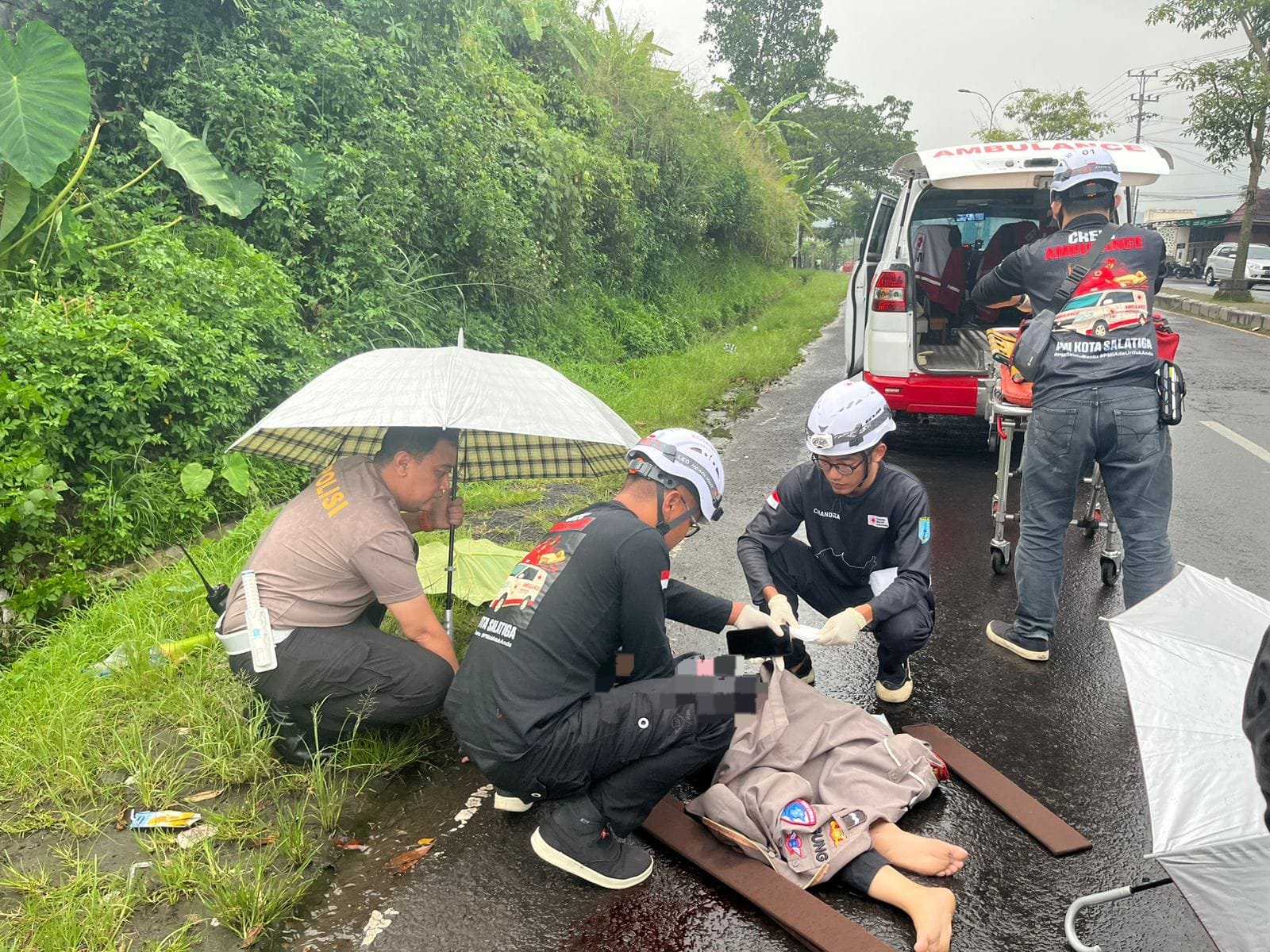 Tindakan itu dilakukan sambil menunggu kedatangan Unit Gakkum Satlantas Polres Salatiga dan ambulans untuk penanganan lebih lanjut.