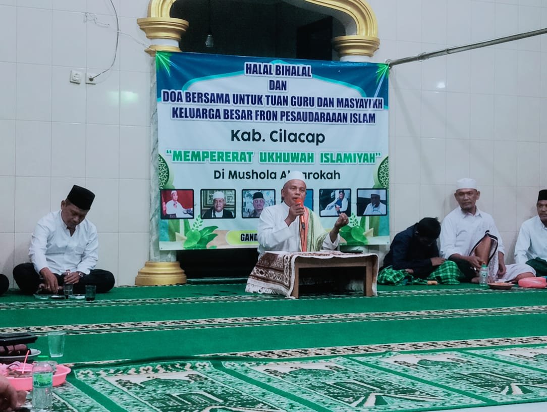 CILACAP | HARIAN7.COM – Dewan Pimpinan Wilayah (DPW) Front Persaudaraan Islam (FPI) Kabupaten Cilacap menggelar doa bersama untuk para masyaikh dan tuan guru yang telah wafat, sekaligus halal bihalal dalam suasana penuh kekhidmatan dan kebersamaan. Kegiatan tersebut dilaksanakan pada Jumat (10/04/2026) di Musholla Al-Barokah, Desa Gandrungmanis, Kecamatan Gandrungmangu.