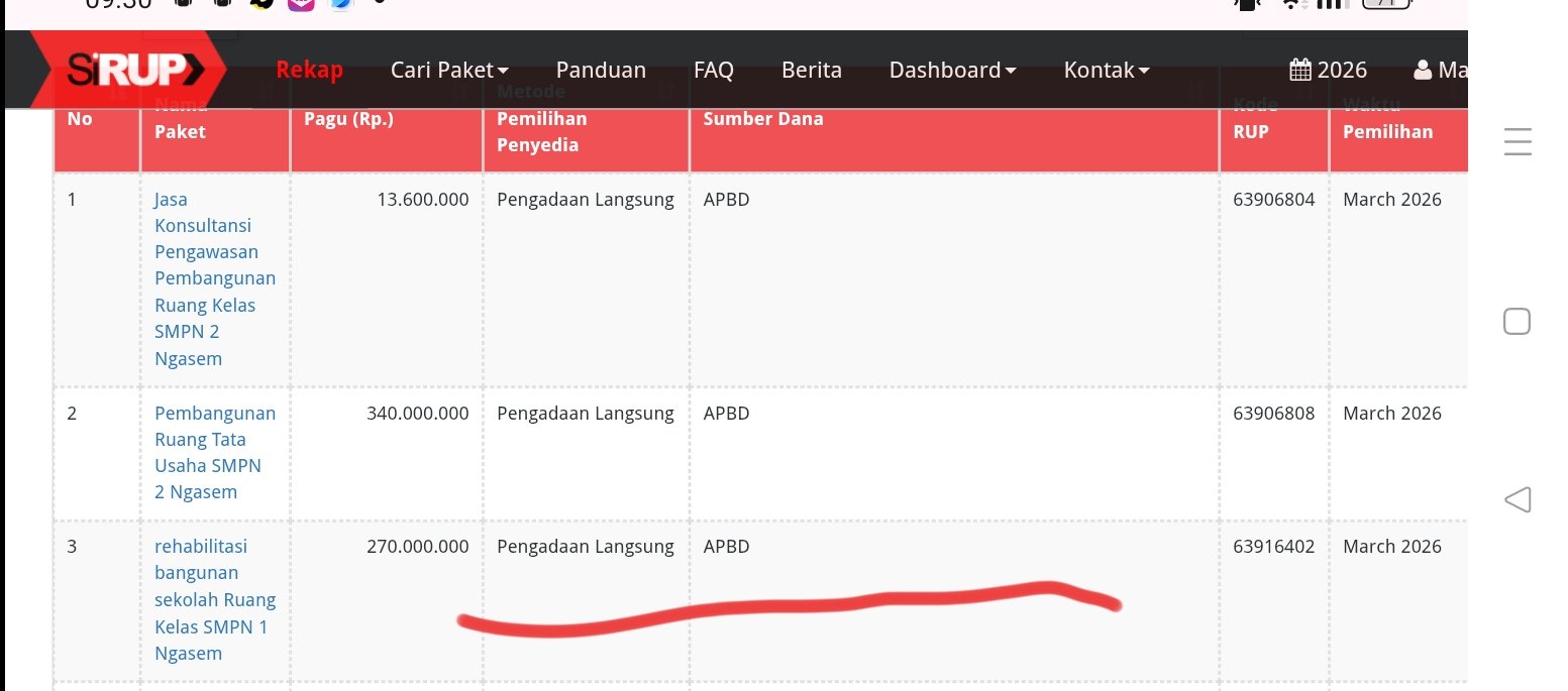 Ia mengungkapkan, berdasarkan data yang dihimpun, SMPN 1 Ngasem juga tercatat menerima anggaran sarana dan prasarana (sarpras) dari APBD sebesar Rp270 juta untuk rehabilitasi ruang kelas. Kondisi ini, menurut dia, memerlukan penjelasan lebih lanjut terkait penggunaan Dana BOS yang juga digunakan untuk pengadaan sarpras.