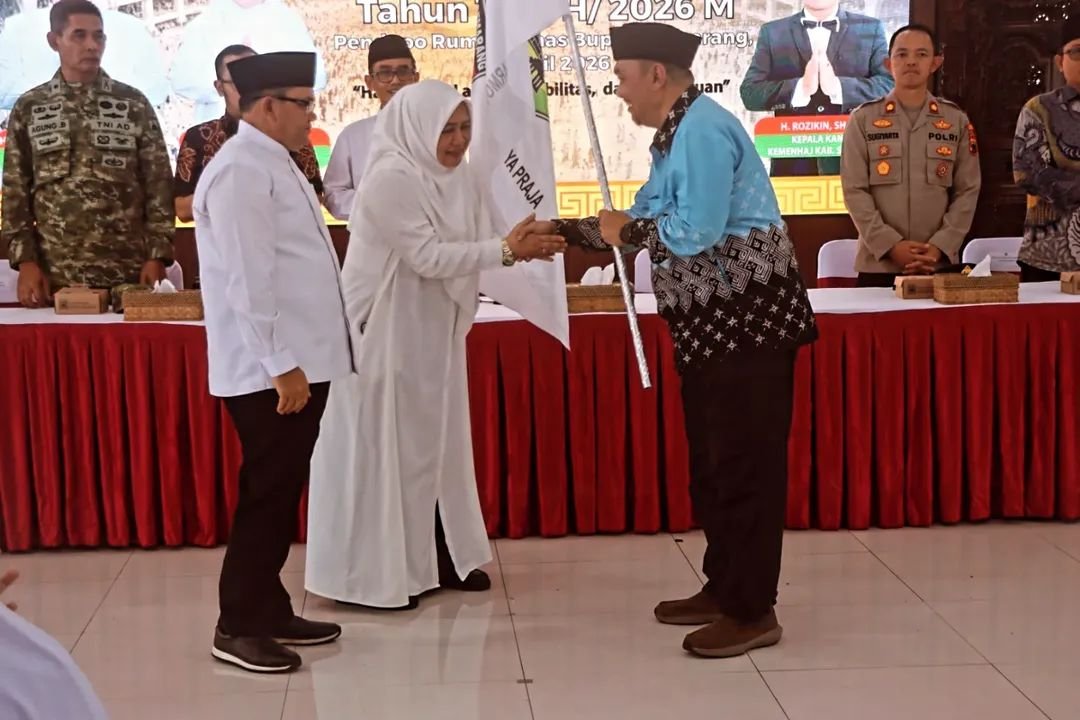 Bupati Semarang H Ngesti Nugraha secara simbolis melepas para jemaah di Pendapa Rumah Dinas Bupati, Jumat (17/4/2026). Ia menekankan pentingnya solidaritas antarsesama jemaah, terutama dalam mendampingi kelompok lansia yang rentan.