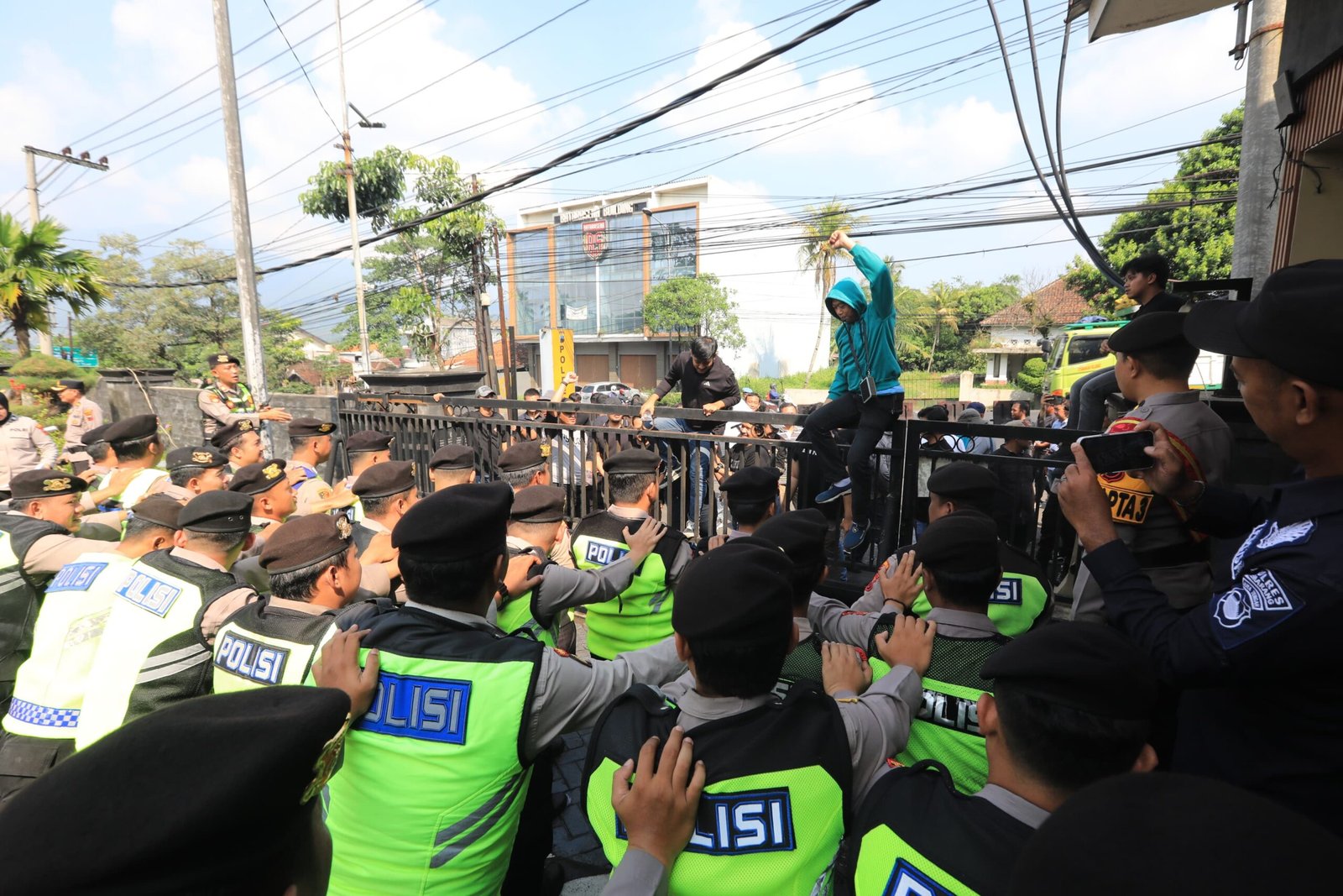 Merespons eskalasi tersebut, petugas segera melakukan langkah pengamanan sesuai prosedur. Pleton Dalmas Awal diterjunkan sebagai lapis pertama, disusul Dalmas Lanjut untuk memperkuat pertahanan. Satu unit mobil water cannon serta regu Raimas bermotor juga dikerahkan untuk mengurai massa secara dinamis.
