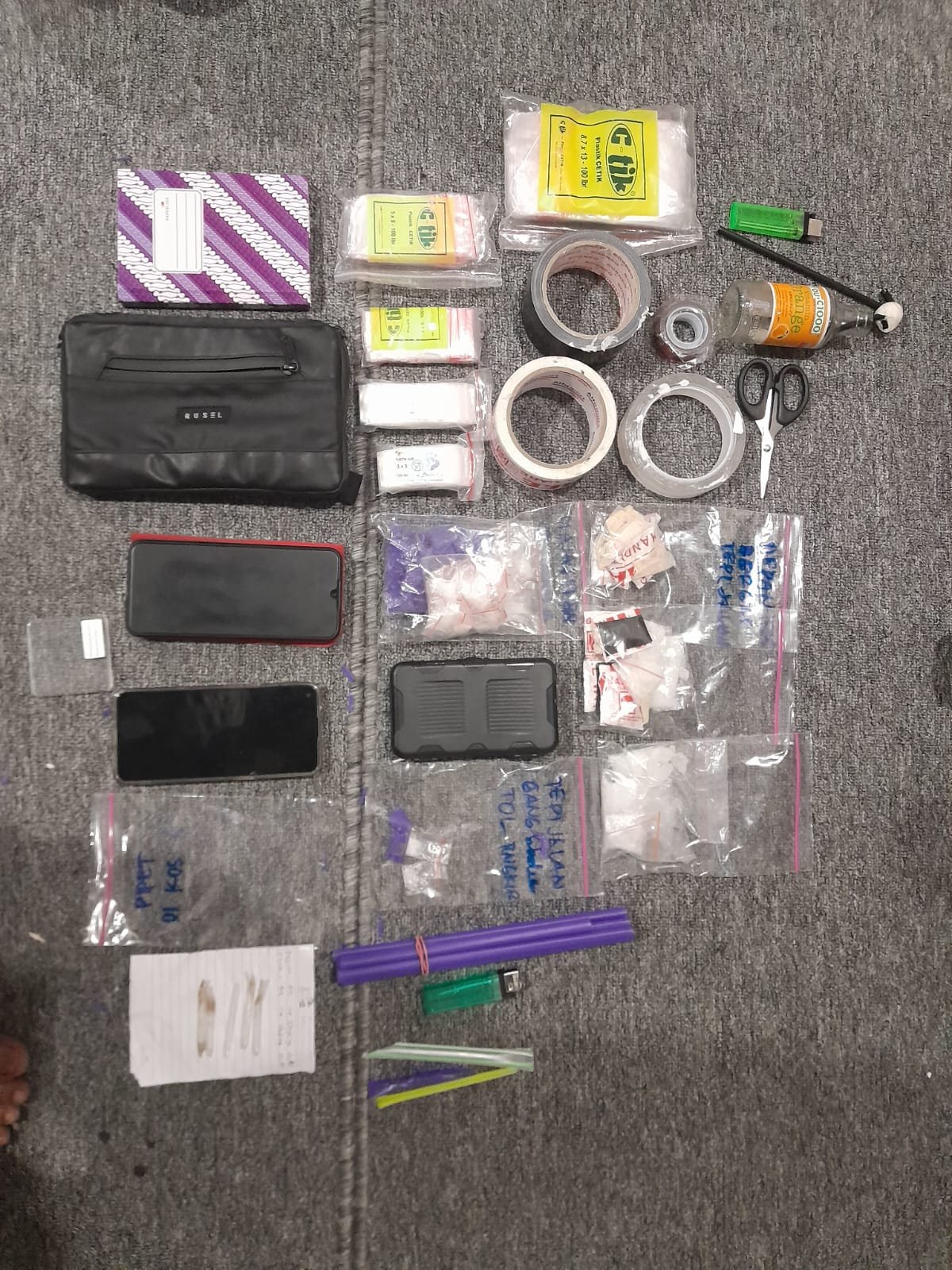 Penggeledahan berlanjut ke kamar kos tersangka di wilayah Bawen. Di sana, polisi menemukan puluhan paket sabu, alat hisap, timbangan digital, plastik klip, hingga buku catatan transaksi. Dari lokasi ini pula, dua tersangka lainnya berhasil diamankan.