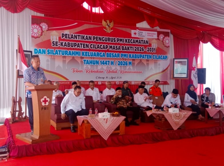 Sebanyak pengurus dari 24 kecamatan di Kabupaten Cilacap dikukuhkan untuk masa bakti 2026–2031 di halaman Klinik PMI Cilacap, di Desa Slarang disaksikan Plt Bupati Cilacap, Ammy Amalia Fatma Surya, camat, kades, dan relawan PMI Cilacap.