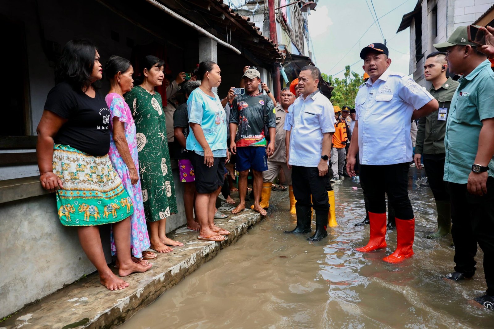 “Tetap semangat nggih. Ini saya datang bersama Pak Bupati dan Wakil Bupati untuk meninjau langsung. Semoga air segera surut,” ujar Ahmad Luthfi saat menyapa warga yang rumahnya masih tergenang.