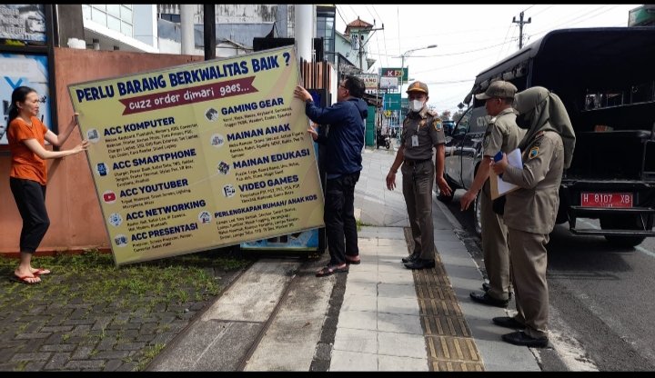 Viral di Medsos, Reklame Menjorok Trotoar di Salatiga Langsung Ditertibkan