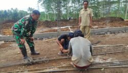 Kades Cukil, Slamet Budiono beserta Babinsa Desa Cukil Serka Khudhori saat melakukan pengawasan pelaksanaan pekerjaan pembangunan Gerai dan Gudang KDMP Desa Sruwen Kecamatan Tengaran Kabupaten Semarang