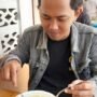 Hawin Alaina, salah satu pengunjung asal Demak, saat menikmati semangkuk Soto Kare Reksa di warung legendaris yang berada di belakang bekas Gedung Bioskop Reksa, Salatiga.