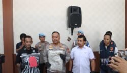 Kapolresta Cilacap didampingi Kasatreskrim dan Kasi Humas tunjukan barang bukti saat presconfren di Mapolresta Cilacap, Jum'at (30/01/2026)