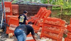 Truk Ayam Terguling di Tanjakan Leter S Sine, Jalan Raya Macet Total