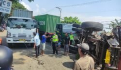 Sepeda motor Honda Vario bernomor polisi H-4130-UK mengalami kerusakan parah pada bagian depan usai menabrak bagian belakang truk Hino dalam kecelakaan di Jalan Soekarno Hatta, Salatiga, Rabu (15/4/2026) malam.