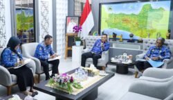 Menteri Hukum Supratman Andi Agtas (tengah) dan Ketua Dewan Pers Prof Komaruddin Hidayat (kiri) saat berdiskusi tentang perlindungan karya jurnalistik dalam RUU Hak Cipta dengan moderator anggota Dewan Pers Dahlan Dahi (kanan) di Hall Dewan Pers, Kamis 23 April 2026. (Foto: Istimewa)