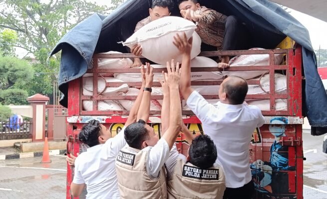 Polda Jateng saat mengamankan pupuk subsidi, dikantor Dirreskrimsus Polda Jateng, Rabu (4/2/2026). Foto: Andi Saputra/harian7