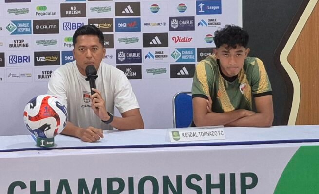 Pelatih dan pemain Kendal Tornado Fc saat jumpa pers sebelum laga menghadapi Barito Putera, Kamis (11/9/2025).