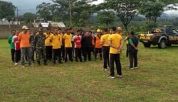 Kepala Dinas Komunikasi dan Informatika Kabupaten Ngawi, Mahmud, menyerahkan potongan tumpeng kepada Ketua Panitia HPN, jurnalis Harian7.com perwakilan Ngawi, Budi Santoso dalam peringatan Hari Pers Nasional 2026 di Gedung Serbaguna Kecamatan Sine, Minggu (15/2/2026).