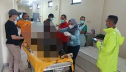 Petugas gabungan saat mengevakuasi jenazah korban
