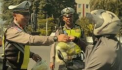 Rayakan Hari Lalu Lintas ke-70: Bukan Tilang, Satlantas Salatiga Pilih Bagikan Sayur Mayur