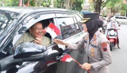 Kapolres Salatiga Tebar Bendera dan Bunga di Jalan Raya, Kobarkan Semangat HUT RI ke-80