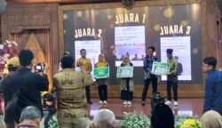 Para juara lomba penulisan, berfoto bersama di puncak acara peringatan HPN PWI Jateng 2025 di Pendopo Bupati Blora.