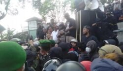 Massa mulai memadati halaman Gedung DPRD Kabupaten Temanggung, Senin (1/9/2025).