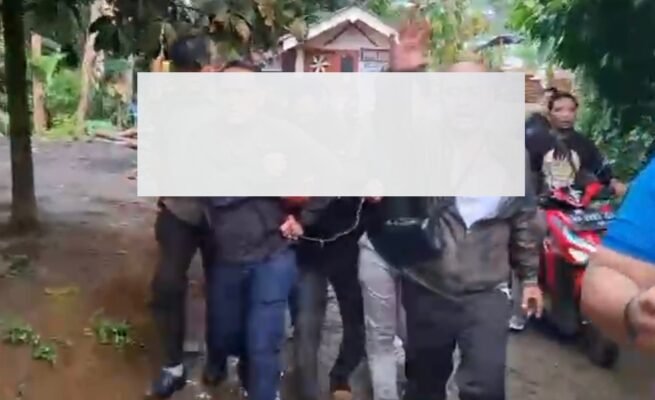 Petugas gabungan saat meringkus Iwan (35), pelaku pembunuhan Serda Rahman Setiawan, di tempat persembunyiannya di Dusun Sumpit, Desa Kepil, Kecamatan Kepil, Kabupaten Wonosobo, Senin (15/9/2025).(Istimewa)