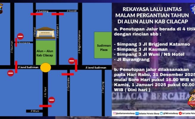Rekayasa Lalu Lintas di Titik Nol Cilacap Mulai Siang Ini Hingga Kamis Dini Hari
