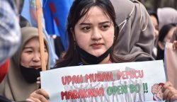 Poster Lucu “Upah Murah, Pemicu Maraknya Open BO!!” Warnai Demo Karyawan PT. SCI di Salatiga