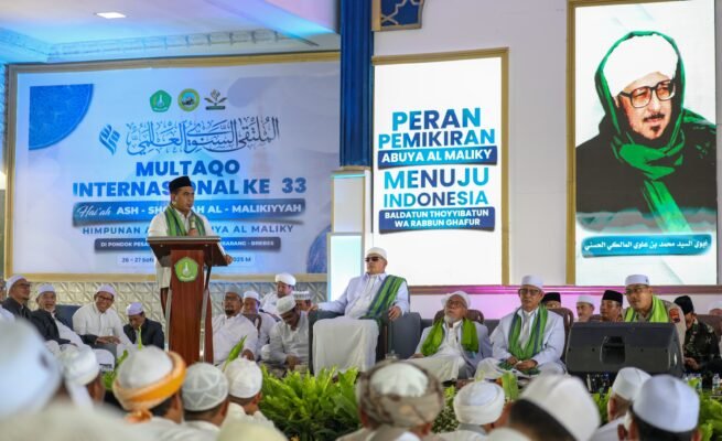 Wakil Gubernur Jawa Tengah, Taj Yasin saat menghadiri acara Multaqo Sanawi Internasional ke-33 Hai’ah Ash Shofwah Al Malikiyyah di Pondok Pesantren Darussalam Jatibarang, Kabupaten Brebes, Kamis 21 Agustus 2025.