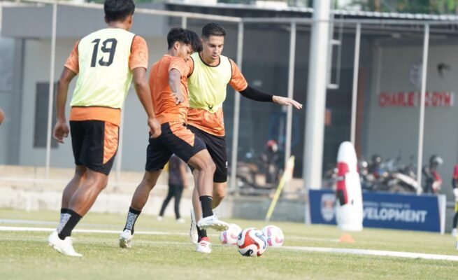 Juan Pablo Morales saat mengikuti latihan Kendal Tornado Fc.