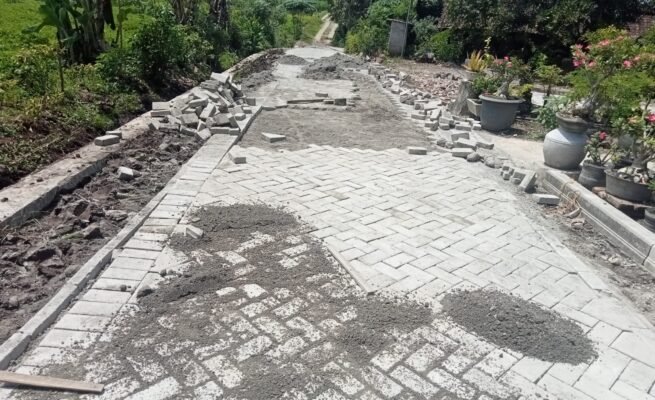 Kondisi jalan paving di Desa Ketanggung yang belum diperbaiki.