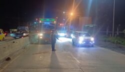 Petugas Satlantas Polres Semarang disaat menunjukkan tempat kejadian perkara (TKP) kecelakaan lalu lintas, Senin(15/12/2025)