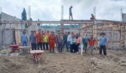 Sejumlah elemen masyarakat bahu membahu gotong royong membangun KDMP Desa Gentan, Kamis (25/12/2025)
