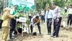 Kapolda Jateng, Irene Pol Ribut Hari Wibowo, secara simbolik menanam pohon di lereng gunung Ungaran.