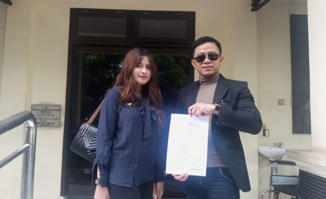 Advokat Bagas Pamenang selaku pengacara korban perusakan rumah saat melapor di Polres Grobogan, Kamis(30/10/2025).