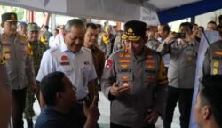 Kapolri Jenderal Listyo Sigit Prabowo saat mengunjungi pengunjung di Stasiun Tawang Semarang, Minggu (21/12/2025).