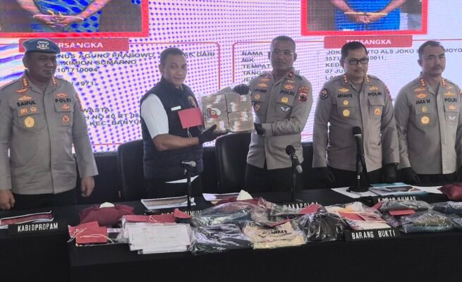 Polda Jateng berhasil mengamankan barang bukti uang dari hasil kejahatan penipuan penerimaan taruna akpol 2025. (Foto: Andi Saputra/Harian7.com).