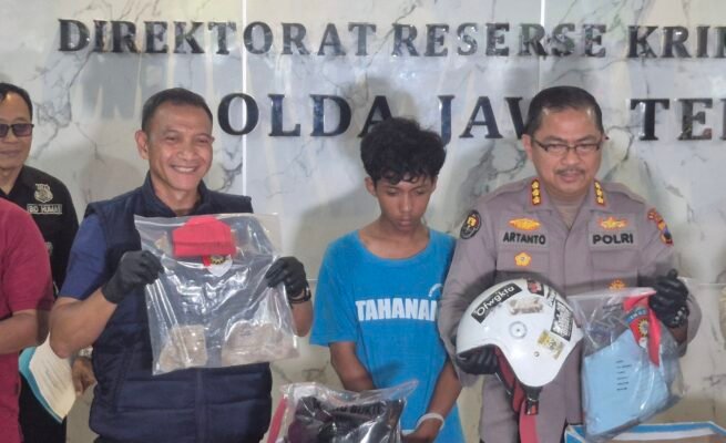 Polda Jateng saat mengamankan salah salah satu orang dewasa demo anarko di Kantor Ditreskrimum Polda Jateng, Selasa (2/9/2025). (Foto: Andi Saputra/Harian7.com)