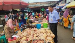 Slamet, Lurah Pasar Kembangaari saat memantau harga ayam.