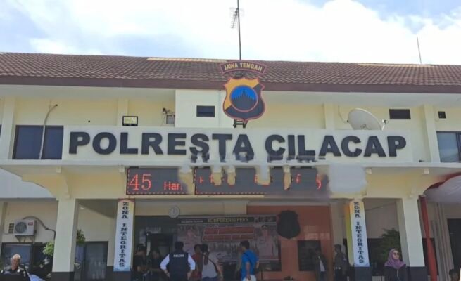 Kapolresta Cilacap didampingi Kasatreskrim dan Kasi Humas tunjukan barang bukti saat presconfren di Mapolresta Cilacap, Jum'at (30/01/2026)
