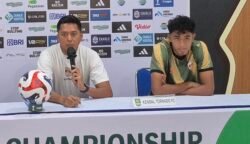 Pelatih dan pemain Kendal Tornado Fc saat gelar presscone sebelum laga melawan Persela Lamongan. Foto: Andi Saputra/Hariam7.com