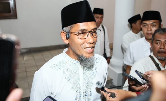Sekda Jateng Sumarno saat menghadiri festival dolanan anak, di candi borobudur Magelang, Sabtu (12/7/2025).