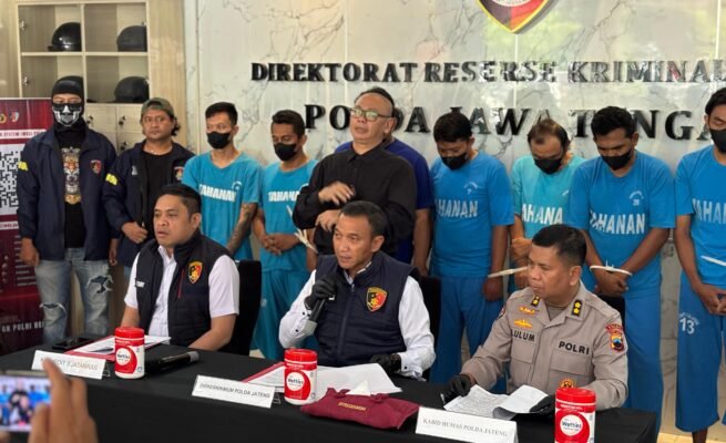 Polda Jateng saat gelar conference pers terkait kasus sindikat penggelapan mobil rental.