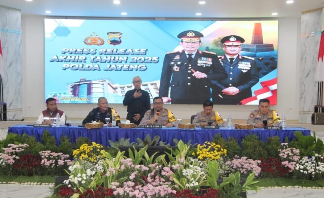 Polda Jateng saat gelar presrealese akhir tahun, di Mapolda Jateng, Senin (29/12/2025).